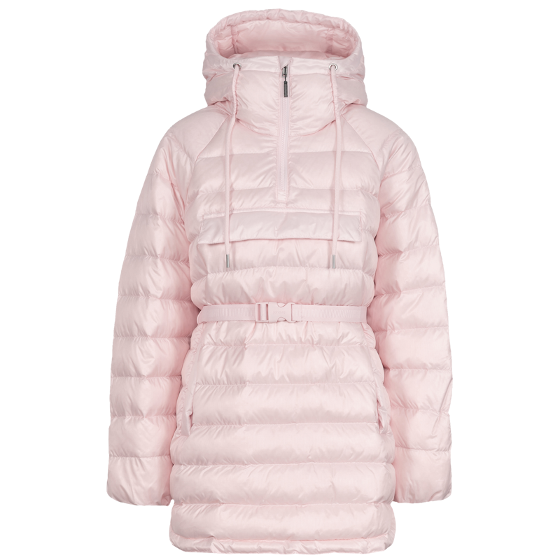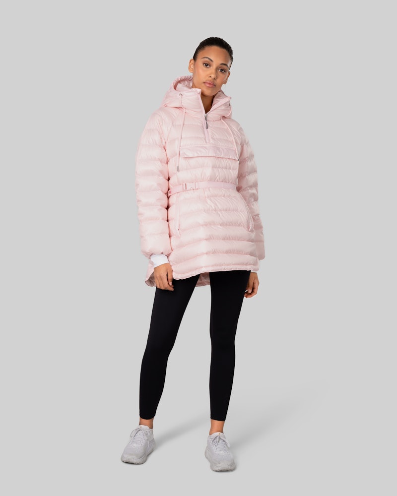 The poncho has an oversized fit with an adjustable belt and press button adjustment at the sides. It is filled with 90/10 down with a fill power of 700, has a down-proof material and an insulated hood and collar. The poncho also features elastic cuffs, a chest pocket, and a durable water-repellent treatment. Responsibly Sourced Down ensures sustainable production.
