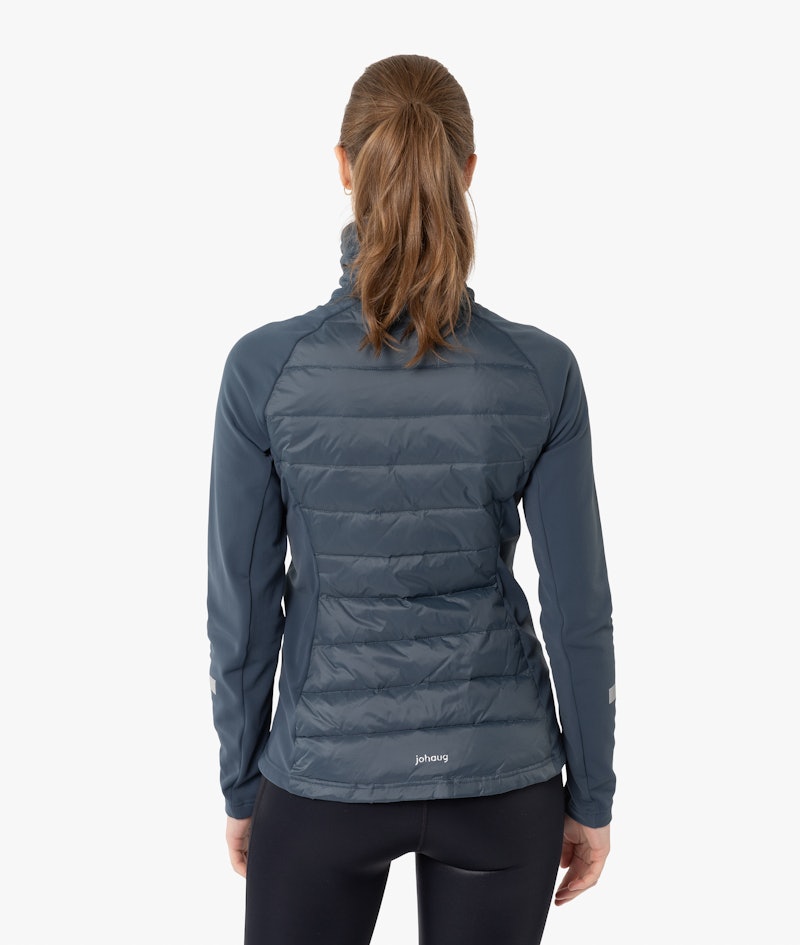 Light and functional down jacket with high collar. Designed with softshell side-panels. Perfect for active days outside or a sporty everyday look.