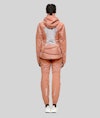 Feminine and sporty winter training jacket for skiing or other outdoor activities. Highly elastic softshell fabric with a down insulated front and back for warmth on colder days. Insulated Primaloft Gold panels on sleeves and collar with ultrasonic quilting for extra warmth, perfect as a ski jacket during winter. Elastic underarm and back panels provides maximum mobility. High warming adjustable collar with detachable and adjustable hood for extra weather protection. Extended hem in the back to keep you warm. Warming hand pockets with zip. Feminine and flattering fit. Sparkled with metallic details and feminine reflective prints for dark winter nights.