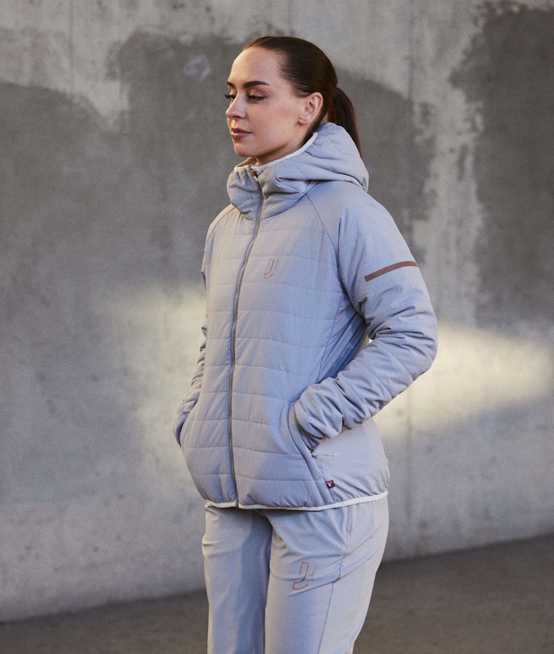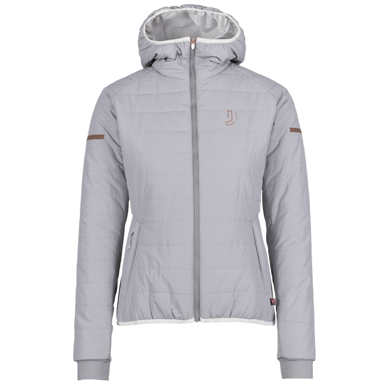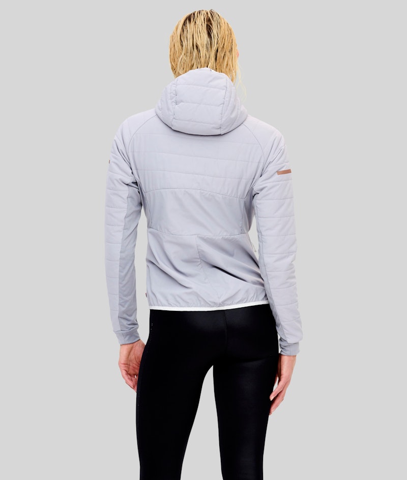 Warm and light training jacket that is perfect to use in between seasons or as a light jacket during winter or a warmer one during summer. The Primaloft® Silver insulation together with a windproof outer layer keeps you warm and dry. Elastic underarm and back panels provides maximum mobility in high activity. Warming hand pockets with zip. Adjustable hood and elastic cuffs. Feminine and flattering fit.