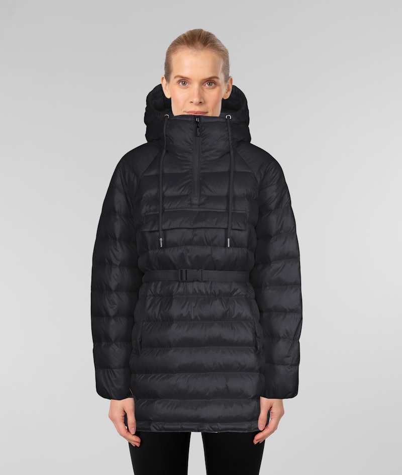Ponchoen har oversized passform med justerbar belte og trykknappjustering på sidene. Nedfylling av 90/10 dun med fill power på 700, dunssikkert materiale og isolert hette og krage. Elastisk mansjett, brystlomme og holdbar vannavstøtende behandling. Responsibly Sourced Down for en bærekraftig produksjon.