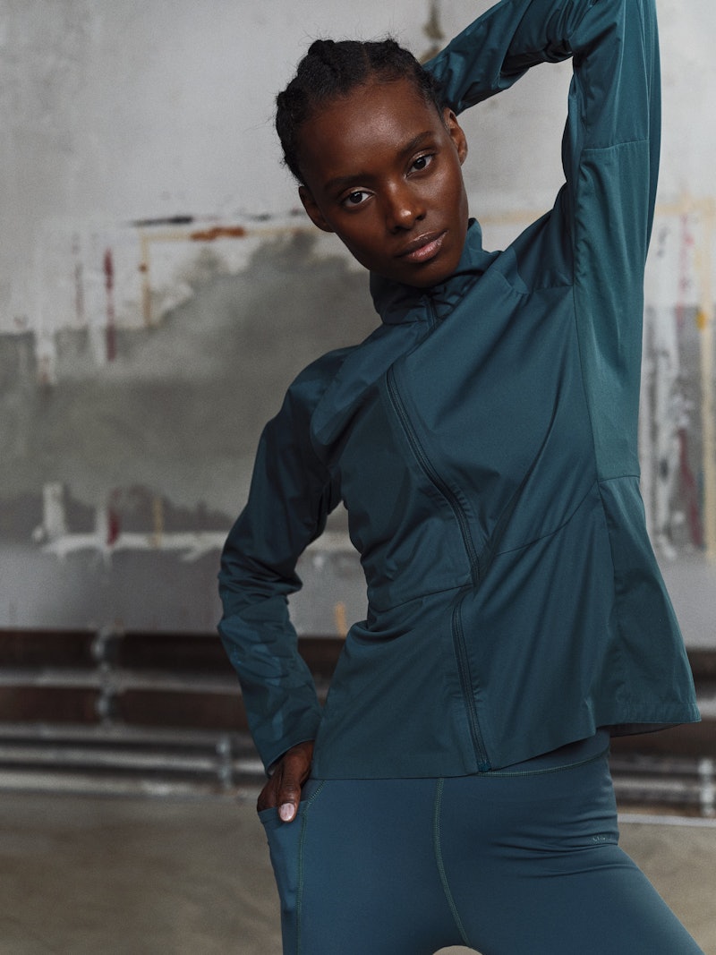 Strategisk plasserte ventilasjonspaneler holder deg tørr og gjør at jakken puster godt under trening.