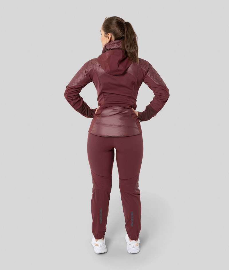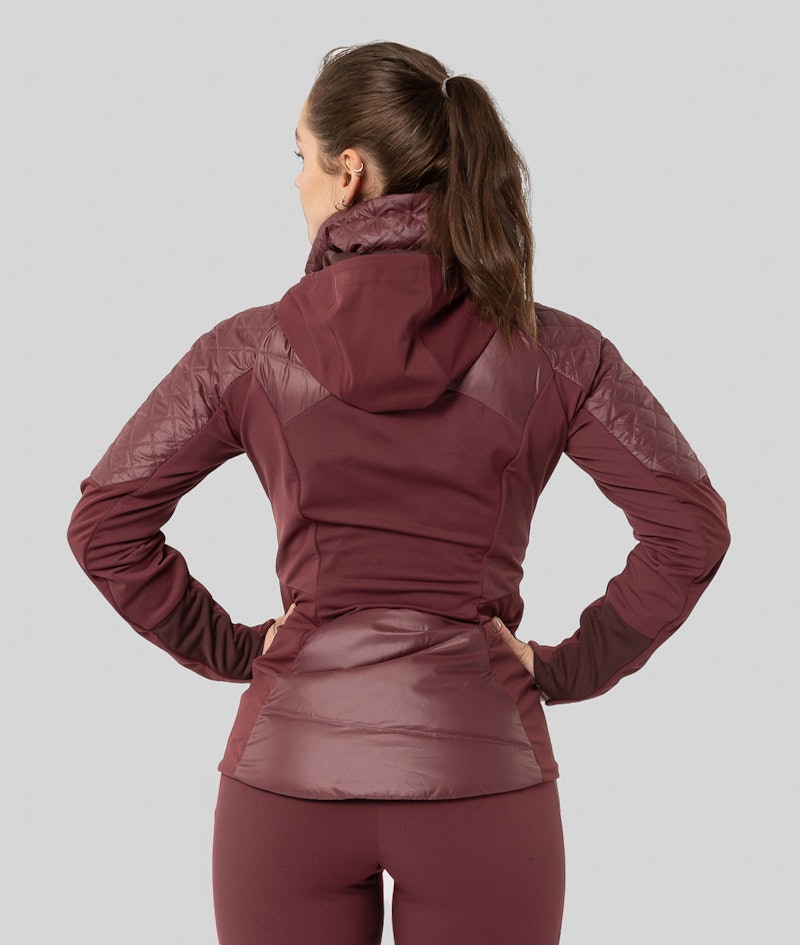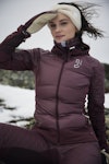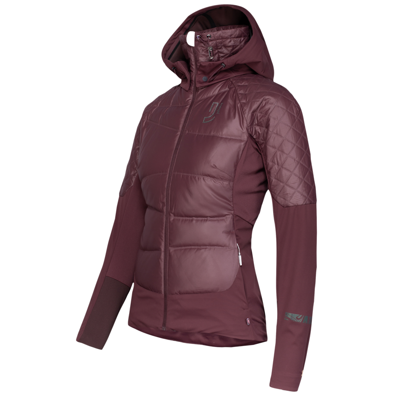 Feminin, teknisk og varm jakke med hette til langrenn eller annen utendørsaktivitet. Elastisk softshell med dunisolert front og bakside. Den har Primaloft® Gold isolering og et vindtett lag som holder deg varm og tørr, perfekt som skijakke på vinteren. Elastiske paneler under armene og på baksiden gir optimal bevegelse. Praktiske lommer med glidelås. Høy, varm og justerbar krage. Justerbar og avtagbar hette for ekstra værbeskyttelse. Jakken har metalliske detaljer, og et feminint og flatterende snitt.