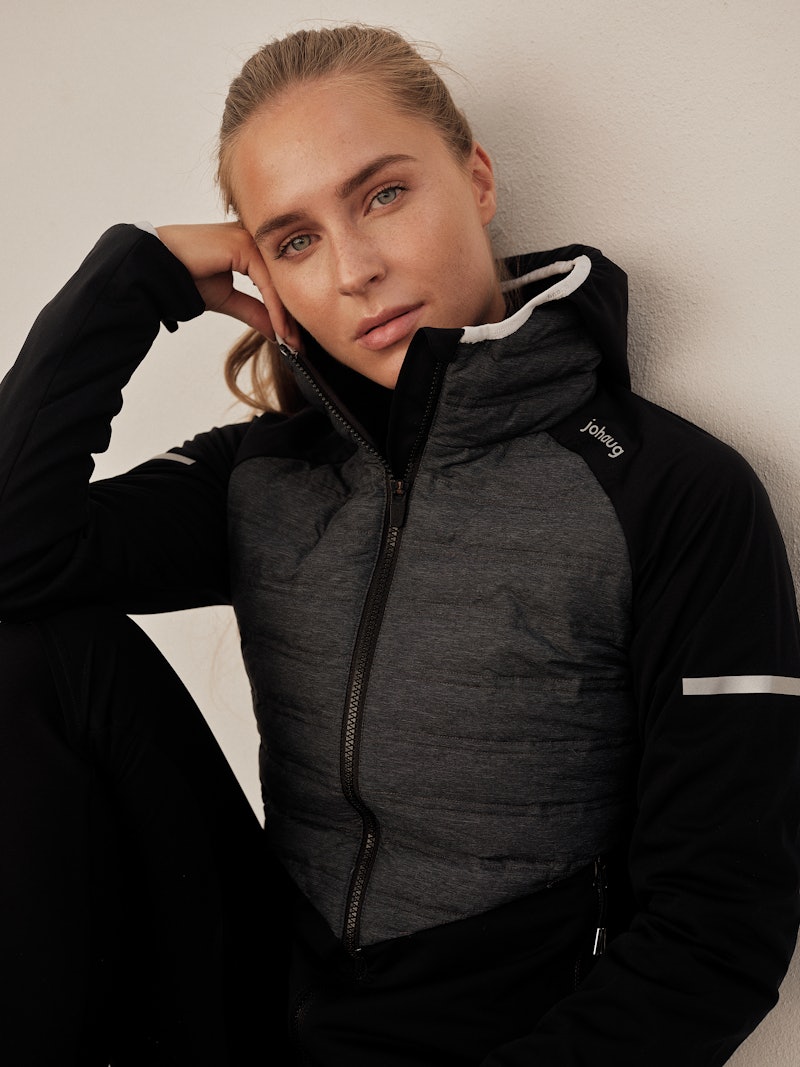 Teknisk, feminin og allsidig jakke med hette som passer perfekt til langrenn, løping, turer, fjellturer eller annen aktivitet utendørs. Jakken er designet med softshell materiale og dunpadding i front for å beskytte mot vær og vind, perfekt som skijakke. Ergonomisk og behagelig passform. Høy hals og romslig hette for ekstra værbeskyttelse. Refleksdetaljer for mørke vinterkvelder. To praktiske lommer i front. Hvis du vipper mellom to størrelser, anbefaler vi å velge den største størrelsen for å sikre optimal bevegelighet.