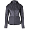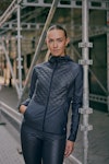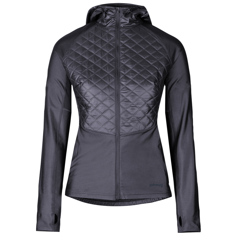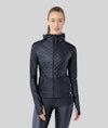 Warming and functional jacket for running. Crafted with a soft and shiny fabric. Primaloft insulated fabric in front with a luxurious quilted pattern.