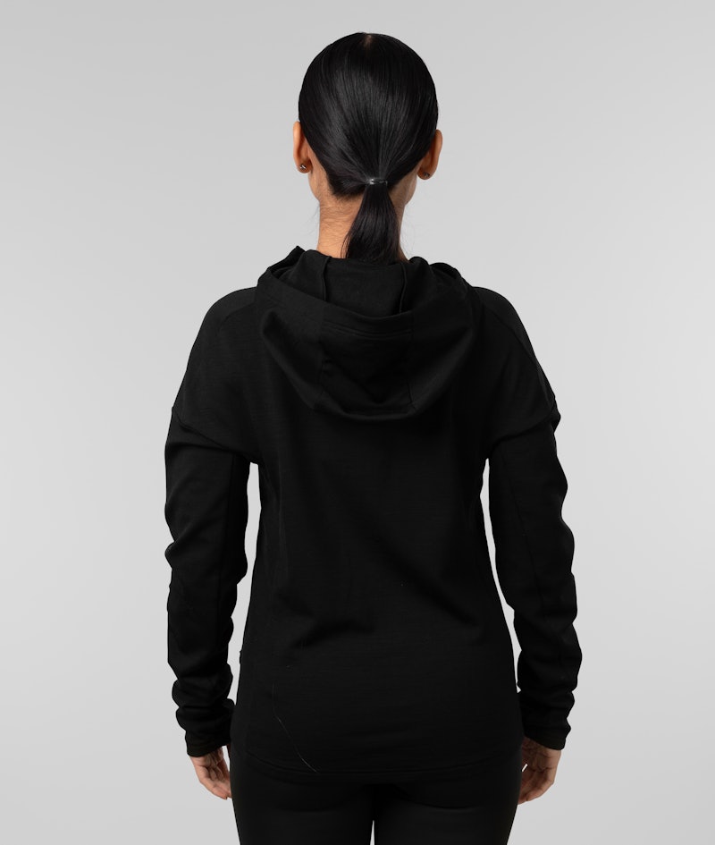 A warming midlayer jacket with hood with zip. Crafted with a soft and comfortable woolmix fabric. Made for outdoor training, or for a sporty everyday look.