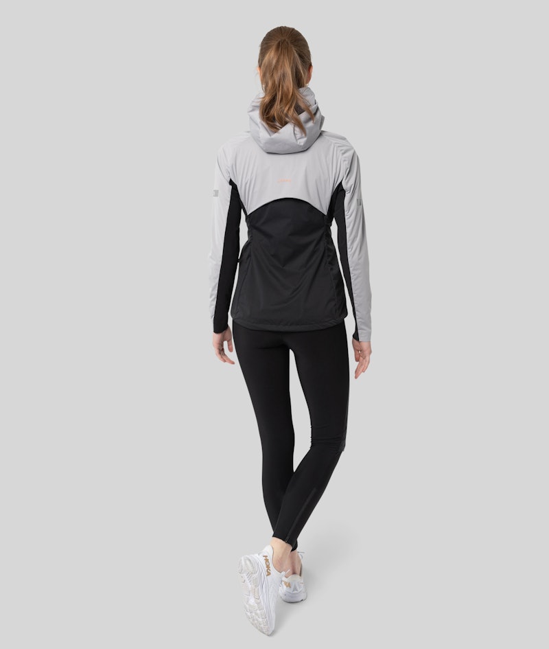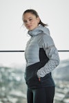 The perfect all-around jacket for cross-country skiing, running, and outdoor activities. Featuring down fill insulation in the front and hood for warmth, it is water-repellent, breathable, and equipped with stretch panels for flexibility and ventilation. Ready for maximum performance in any weather.
