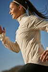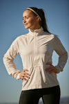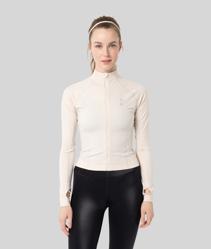 The jacket has a feminine fit to get minimal wind resistance while running.