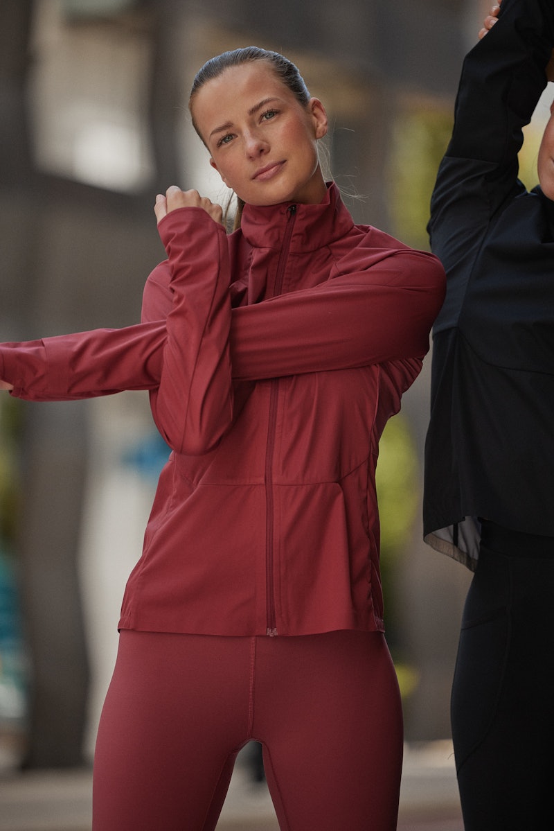 The jacket has a feminine fit to get minimal wind resistance while running.