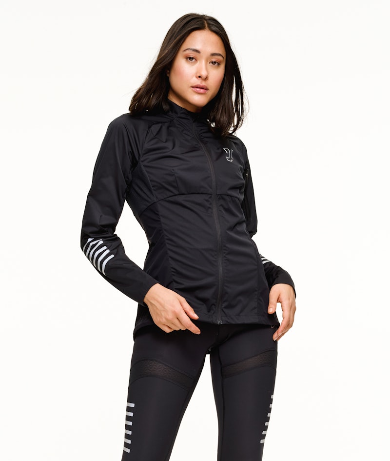 Superlight-weight running jacket designed with high performance in mind. Crafted from wind resistant and water repellant softshell fabric. Strategically placed mesh ventilation aids breathability, while raglan sleeves encourage a full range of motion. Phone pocket with cord control at upper sleeve makes it easy to listen to your favourite music while running. Reflective details for visibility in the dark. Feminine and flattering fit.