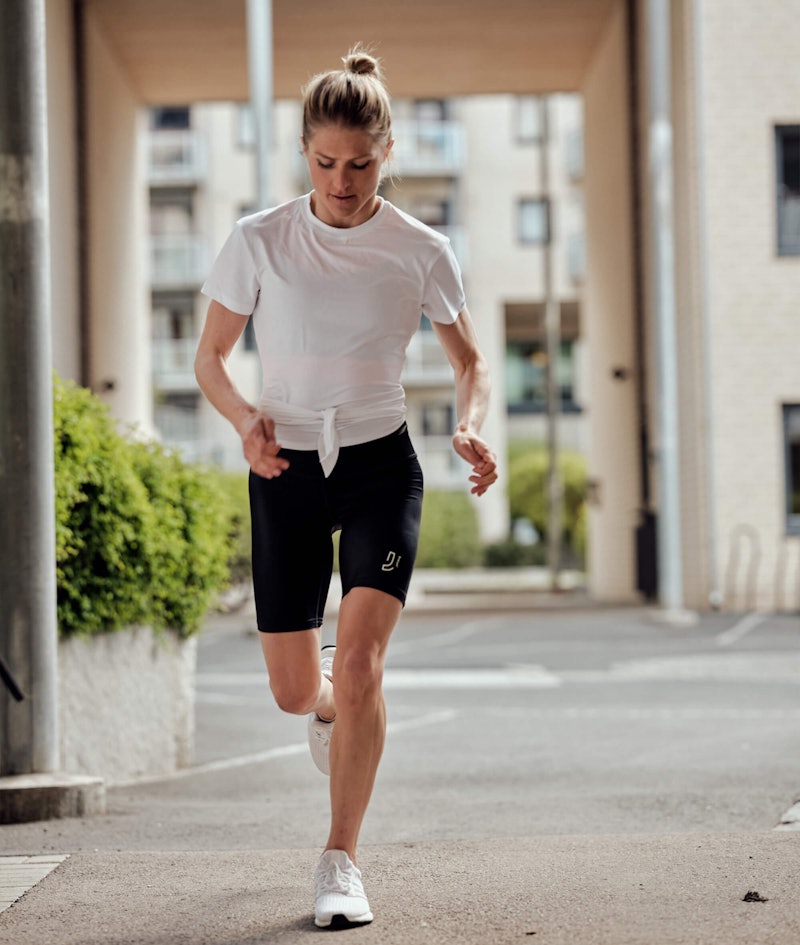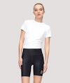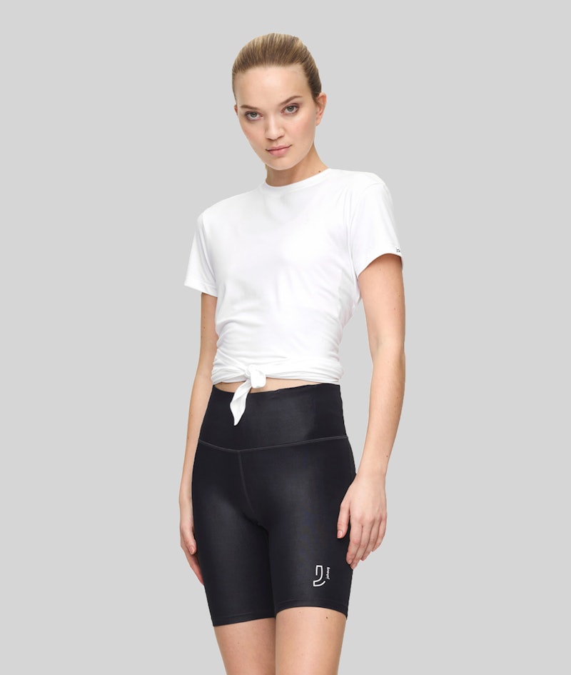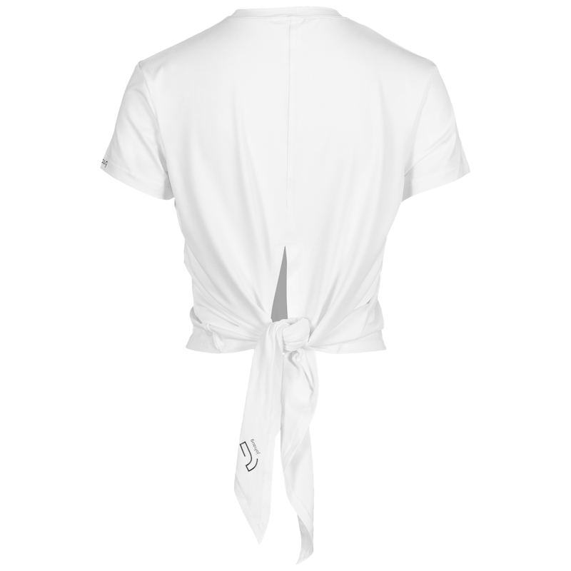 Light and trendy split tee for all kinds of training. The tee can be tighten into a cropped tee when placing the knot at front. If tighten at back you get a looser more regular fit and length. The fabric feels amazing when working out, and the excellent wicking power will keep you dry while giving your all.